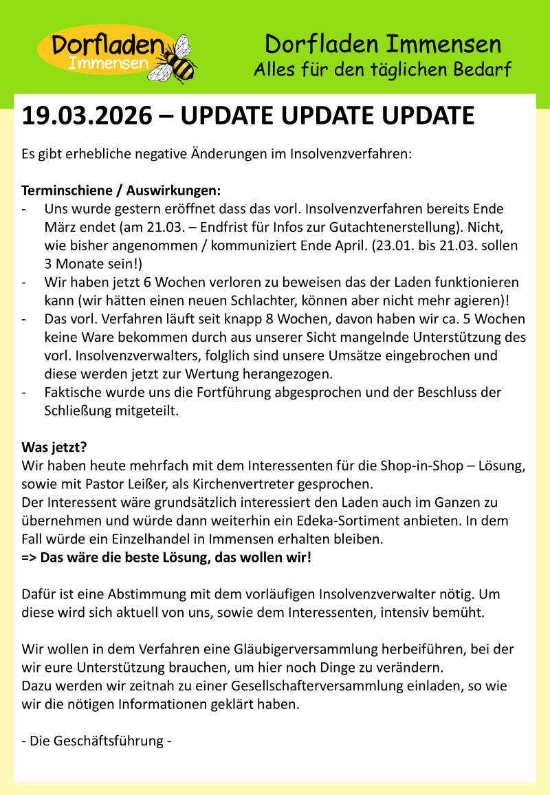 19.03.2026 - Update vorläufiges Insolvenzverfahren